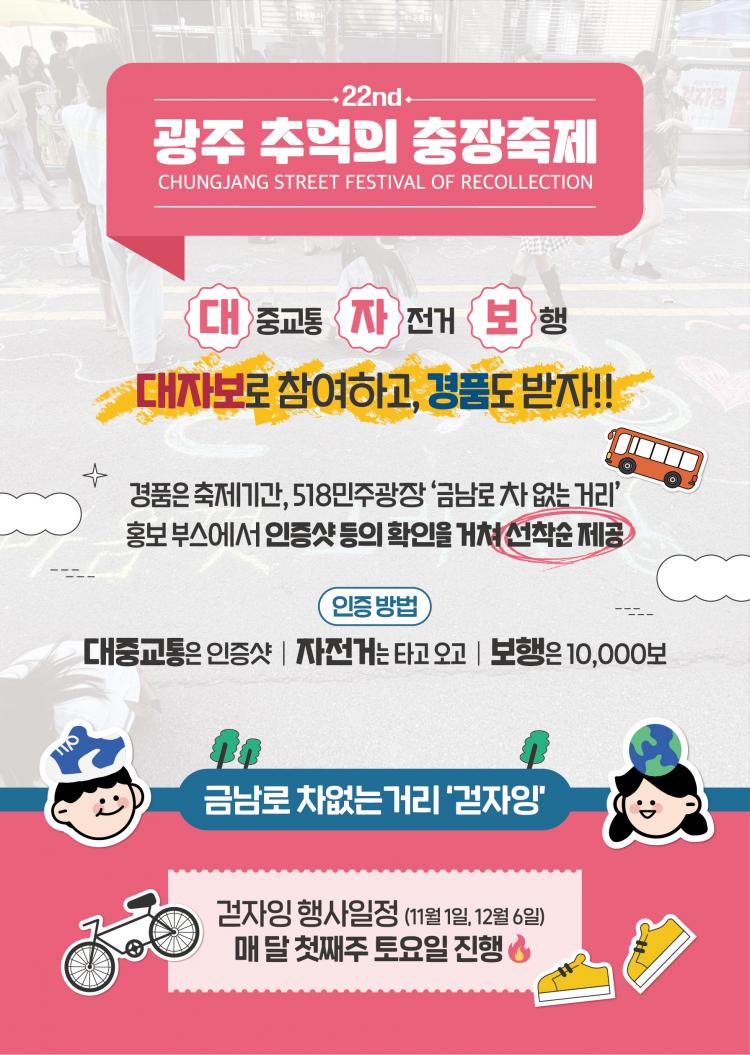µ¿±¸´Â À̸¦ À§ÇØ ±¤ÁÖ±¤¿ª½Ã¿Í ¼ÕÀâ°í 5¡¤18 ¹ÎÁÖ±¤Àå¿¡¼ È«º¸ ºÎ½º¸¦ ¿î¿µÇÑ´Ù. À̰÷¿¡¼´Â ±Ý³²·Î Â÷ ¾ø´Â °Å¸® »ç¾÷ÀÇ Çʿ伺°ú ±×µ¿¾È ÃßÁø ¼º°ú¸¦ È¿°úÀûÀ¸·Î È«º¸Çϱâ À§ÇØ ¡ãÆ÷ÅäÁ¸ À̺¥Æ®(Æ÷ÅäÁ¸¿¡¼ ÂïÀº »çÁøÀ» SNS¿¡ ¿Ã¸®¸é °æÇ°À» ¼±Âø¼øÀ¸·Î Á¦°ø) ¡ã´ëÀÚº¸ ½Çõ À̺¥Æ®(´ëÁß±³Åë, ÀÚÀü°Å, º¸ÇàÀ» ÀÌ¿ëÇØ Âü¿©ÇÑ ¹æ¹®°´¿¡°Ô ¼±Âø¼øÀ¸·Î °æÇ° ÁõÁ¤) µîÀ» ÁøÇàÇÑ´Ù.