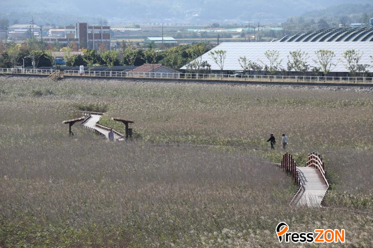 °Áø¸¸»ýŰø¿øÀº 20¸¸ Æò¿¡ ´ÞÇÏ´Â ÀåÄèÇÑ °¥´ë ±º¶ôÁö´Ù. 2~3m ³ôÀÌÀÇ °¥´ëµéÀÌ ¹Ù¶÷¿¡ µû¶ó Àººû°ú Ȳ±ÝºûÀ¸·Î ÀÏ··À̴ dz°æÀÌ ÀλóÀûÀÌ´Ù. µ¥Å© ޹æ·Î¿Í Àü¸Á´ë, ÀÚÀü°Å±æÀÌ Á¶¼ºµÅ °È°Å³ª ÀÚÀü°Å¸¦ Ÿ¸ç »ýŰø¿øÀ» ¿©À¯·Ó°Ô µÑ·¯º¼ ¼ö ÀÖ´Ù.