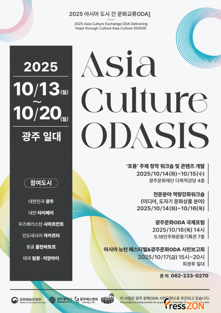 ±¤ÁÖÇü ¹®È °øÀû°³¹ß¿øÁ¶(ODA)-¾Æ½Ã¾Æ ÄÃÃÄ ¿À´Ù½Ã½º(Asia Culture ODASIS)´Â ±¤ÁÖ¸¦ Áß½ÉÀ¸·Î ¡ã¸ù°ñ ¿ï¶õ¹ÙÅ丣 ¡ãÀεµ³×½Ã¾Æ ÀÚÄ«¸£Å¸ ¡ãű¹ ¶÷Ǭ¡¤Ä¡¾Ó¸¶ÀÌ ¡ã¿ìÁŰ½ºÅº »ç¸¶¸£ÄÆ® ¡ã´ë¸¸ Ã¢È µî ¾Æ½Ã¾Æ 6°³±¹ 7°³ µµ½ÃÀÇ Ã»³â¿¹¼ú°¡ 70¿© ¸íÀÌ Âü¿©ÇÏ´Â ±¹Á¦ ¹®È¿¹¼ú Çù·Â»ç¾÷ÀÌ´Ù. À̵éÀº µµ½ÃÀç»ý, Áö¿ª Æ¯È ¹®È»óǰ °³¹ß, ¹Ìµð¾î¾ÆÆ® µî ´Ù¾çÇÑ Çù¾÷ÇÁ·ÎÁ§Æ®¸¦ ÃßÁøÇß´Ù.