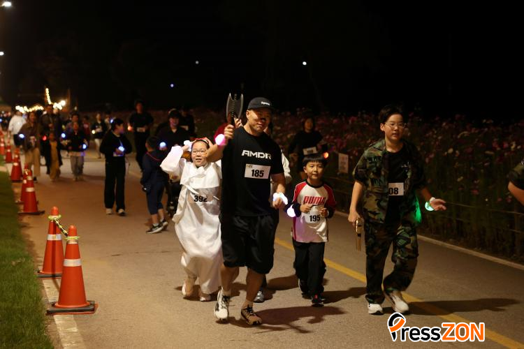 ¾îµÒÀÌ Â£¾îÁø Àú³á³è¿¡ ¸ðÀÎ Âü°¡ÀÚµéÀº ¼Õ¸ñ¿¡ ÈÞ´ë¿ë Á¶¸íÀ» Âø¿ëÇϰí Ȳ·æÁ¤¿ø¿¡¼ Ȳ¹Ì¸£·£µå, ¿¬²ÉÁ¤¿ø, ÇØ¹Ù¶ó±â ´ÜÁö¸¦ Áö³ª Ãâ¹ß ÁöÁ¡À¸·Î µ¹¾Æ¿À´Â 2.5km ±¸°£À» ÇÔ²² ´Þ·È´Ù.