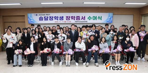 [ÇÁ·¹½ºÁ¸] Àç´Ü¹ýÀÎ ¹«¾È±º½Â´ÞÀåÇÐȸ(ÀÌ»çÀå ±è»ê)´Â 17ÀÏ 2025³â ÇϹݱ⠽´ÞÀåÇлý¿¡°Ô ÀåÇÐÁõ¼¸¦ ¼ö¿©Çß´Ù.