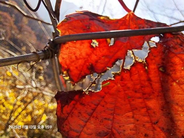 • °·ÄÇÑ »öä ´ëºñ: £Àº ÁÖȲ»ö ¶Ç´Â ºÓÀº»ö ÀÙ»ç±Í°¡ È¸é ´ëºÎºÐÀ» Â÷ÁöÇϸç, µÚÂÊÀÇ ¹à°í È帴ÇÑ ¹è°æ(¿ª±¤À¸·Î ÀÎÇÑ Èò»ö, ³ë¶õ»ö)°ú ±ØÀûÀÎ ´ëºñ¸¦ ÀÌ·ì´Ï´Ù. ÀÌ ºÓÀº»öÀº ´Ü¼øÇÑ °¡À»ÀÇ »öÀÌ ¾Æ´Ñ, ¼º¼÷, ¿Á¤, ȤÀº ¾ÆÇÄÀ» °ßµ®³½ Á¸Àç°¨À» »ó¡ÇÕ´Ï´Ù.