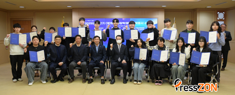 [ÇÁ·¹½ºÁ¸] (Àç)ºû°íÀ»ÀåÇÐÀç´Ü(ÀÌ»çÀå °±âÁ¤ ±¤ÁÖ±¤¿ª½ÃÀå)Àº 17ÀÏ ½Ãû ºñÁî´Ï½º·ë¿¡¼ ¡®2025³â ÇϹݱ⠺û°íÀ»ÀåÇÐÀç´Ü ÀåÇÐÁõ¼ ¼ö¿©½Ä¡¯À» ¿°í, ´ëÇ¥·Î Âü¼®ÇÑ Çлý 20¸í¿¡°Ô ÀåÇÐÁõ¼¸¦ Àü´ÞÇß´Ù.