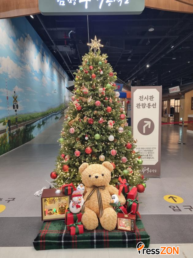 ƯÈ÷, Ãß¾ï°øÀÛ¼Ò ÀÔ±¸¿¡ ¸¶·ÃµÈ ¡®ÇÔÆò¿ª¡¯ÀÇ ±âÂ÷´Â ÀºÀºÇÑ Á¶¸í°ú ÇÔ²² Å©¸®½º¸¶½º ¸®½º¿Í Àü³ª¹« ÀÙ °¡·£µå·Î ²Ù¸çÁ³´Ù. ³»ºÎ¿¡´Â Æ®¸®¿Í º° Àå½Ä µî ¾Æ±âÀÚ±âÇÑ ¼ÒǰÀ» ¹èÄ¡ÇØ µû¶æÇÑ °Ü¿ï °¨¼ºÀ» ÀüÇÏ´Â Æ÷ÅäÁ¸ ¿ªÇÒÀ» ÇÏ¸ç °ü¶÷°´µéÀÇ ¹ß±æÀ» ²ø°í ÀÖ´Ù.