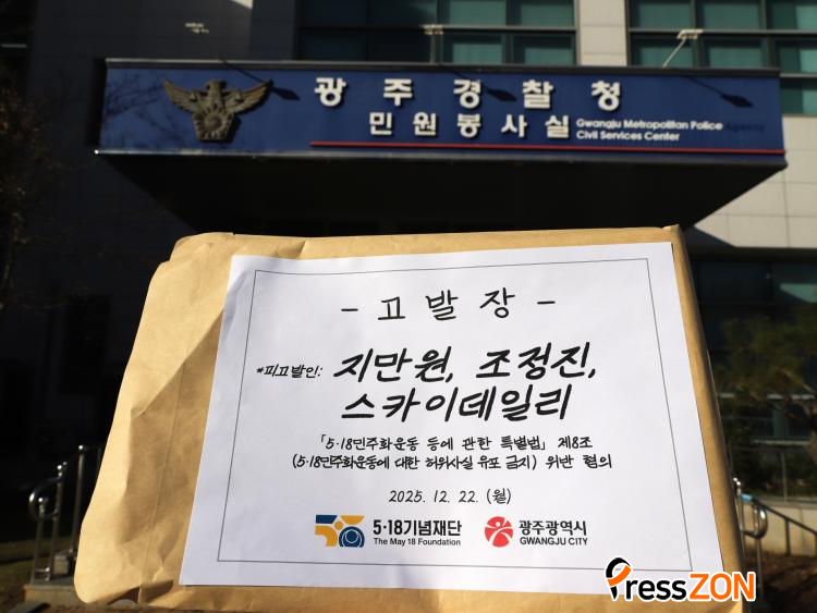 [ÇÁ·¹½ºÁ¸] ±¤ÁÖ±¤¿ª½Ã(½ÃÀå °±âÁ¤)¿Í 5¡¤18±â³äÀç´ÜÀº 22ÀÏ Áö¸¸¿ø¡¤Á¶Á¤Áø ¾¾¿Í ÀÎÅÍ³Ý ½Å¹®»ç ¡®½ºÄ«À̵¥Àϸ®¡¯¸¦ 5¡¤18¹ÎÁÖȿ µî¿¡ °üÇÑ Æ¯º°¹ý Á¦8Á¶(ÇãÀ§»ç½Ç À¯Æ÷ ±ÝÁö) À§¹Ý ÇøÀÇ·Î °í¹ßÇß´Ù.