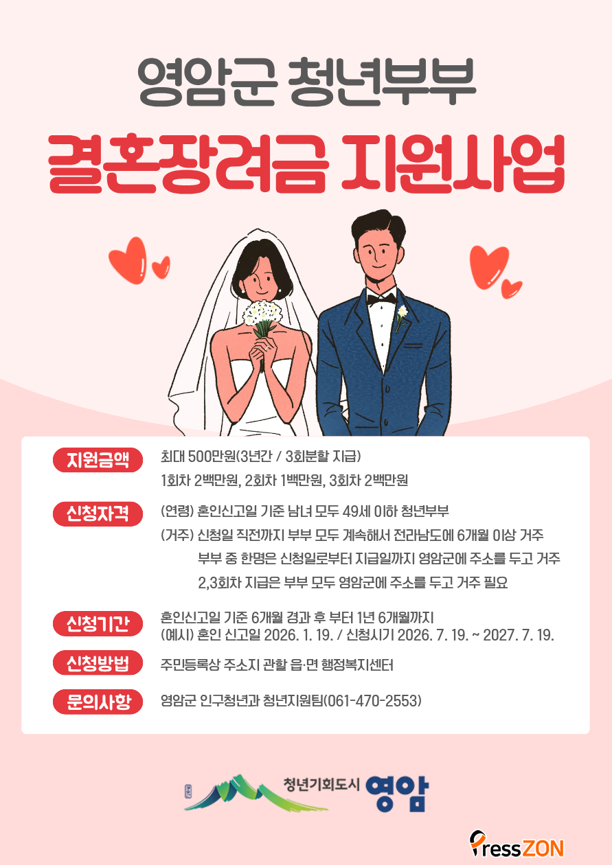 ¡®2026 û³âºÎºÎ °áÈ¥Àå·Á±Ý Áö¿ø»ç¾÷¡¯¿¡ µû¸¥ ÀÌ Áö¿øÀº, ½ÅÈ¥ºÎºÎ °æÁ¦ ºÎ´ã ¿ÏÈ, û³â Àα¸ À¯ÀÔ ¹× Áö¿ª Á¤ÂøÀ» À§ÇÑ °Í.