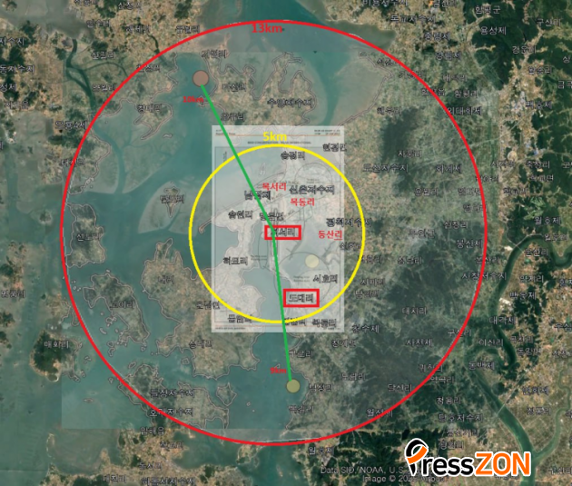 ¡¸°øÇ׽ü³¹ý¡¹°ú ¡¸Ç×°ø¾ÈÀü¹ý¡¹, ±¹Á¦¹Î°£Ç×°øÇù¾à ºÎ¼Ó¼¿¡ ±Ù°ÅÇØ Á¦Á¤µÈ ±¹Åä±³ÅëºÎ °í½Ã ¡¸Á¶·ù µî ¾ß»ýµ¿¹° Ãæµ¹À§Çè °¨¼Ò¿¡ °üÇÑ ±âÁØ¡¹Àº °øÇ× ÁÖº¯À» ¡®°øÇ×Ç¥Á¡ ±âÁØ 13km À̳»¡¯·Î ±ÔÁ¤Çϰí ÀÖ´Ù.