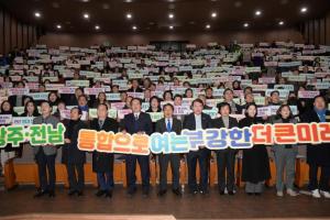 À̹ø Åä·Ðȸ¸¦ ÁÖÃÖÇϰí ÁÂÀåÀ» ¸ÃÀº ½Å¼öÁ¤ ÀÇÀåÀº¡°±¤ÁÖ․Àü³² ÇàÁ¤ÅëÇÕÀº ´Ü¼øÈ÷ ÇàÁ¤ ±¸¿ªÀ» ´Ù½Ã ±×¸®´Â ÀÛ¾÷ÀÌ ¾Æ´Ï¶ó, ½Ã¹ÎÁÖ±ÇÀÇ Æ²À» »õ·Ó°Ô ¼³°èÇÏ´Â Áß´ëÇÑ º¯È¡±¶ó¸ç ¡°ÅëÇÕÀÌ Áö¿ªÀÇ ¹Ì·¡¿Í ÁÖ¹ÎÀÇ »î¿¡ ½ÇÁúÀûÀÎ ¼º°ú·Î À̾îÁö±â À§Çؼ´Â ÃæºÐÇÑ ³íÀÇ¿Í Æø³ÐÀº »çȸÀû °ø°¨´ë Çü¼ºÀÌ ¹«¾ùº¸´Ù Áß¿äÇÏ´Ù¡±°í ¹àÇû´Ù.