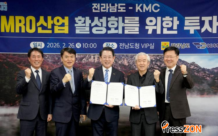 [ÇÁ·¹½ºÁ¸] Àü¶ó³²µµ´Â 26ÀÏ µµÃ» Á¢°ß½Ç¿¡¼ ¹Ì±¹ ȹ°±â °³Á¶(P2F) Àü¹®±â¾÷ÀÎ KMC¿Í 3õ480¾ï ¿ø ±Ô¸ðÀÇ Ç×°øÁ¤ºñ(MRO) ÅõÀÚÇù¾àÀ» ¸Î°í, ¹«¾È±¹Á¦°øÇ×À» ±Û·Î¹ú Ç×°ø¹°·ù °ÅÁ¡À¸·Î À°¼ºÇÏ´Â ±â¹ÝÀ» ¸¶·ÃÇß´Ù.