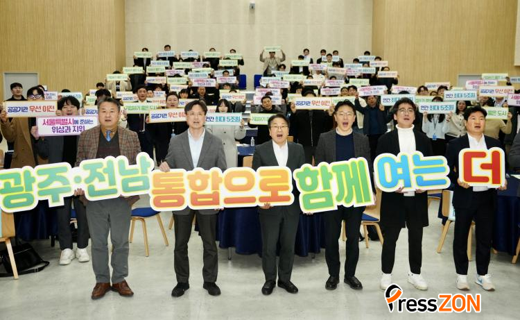 °±âÁ¤ ±¤ÁÖ½ÃÀåÀº ¡°Ã·´Ü3Áö±¸ AIÁýÀû´ÜÁö ÁöÁ¤, Àü³² µ¿ºÎ±Ç°ú ±¤ÁÖ¸¦ ÀÕ´Â AX»ê¾÷ ¸Þ°¡Å¬·¯½ºÅÍ Á¶¼º µî »ê¾÷Áöµµ´Â ±¤ÁÖÀü³² ÅëÇÕÀ» ÅëÇØ ±×¸± ¼ö ÀÖ¾ú´Ù¡±¸ç ¡°ÅëÇÕÀ» °è±â·Î »ê¾÷À» Ű¿ì°í, ÀÏÀÚ¸®¸¦ ¸¸µé°í, û³âµéÀÌ ¸Ó¹«´Â ¡®ÀÎ ÅëÇÕÆ¯º°½Ã¡¯, ¡®ÀÎ ±¤ÁÖ¡¯ÀÇ ²ÞÀ» ÀÌ·ï°¡°Ú´Ù¡±°í ¹àÇû´Ù.