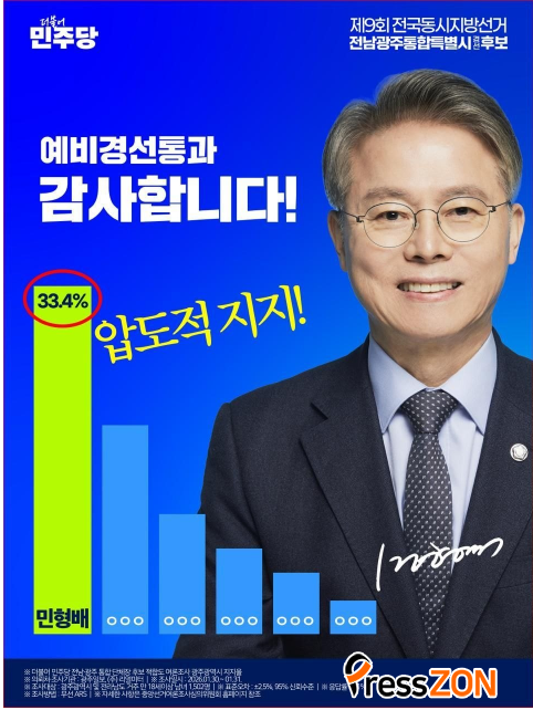 ÇØ´ç Ä«µå´º½º¿¡´Â ¹Î Èĺ¸ÀÇ »çÁø°ú ÇÔ²² ¡®33.4%¡¯ ¶ó´Â ¼öÄ¡°¡ ÀûÈù ¸·´ë±×·¡ÇÁ¸¦ ¹èÄ¡Çϰí , ¡° ¾ÐµµÀû ÁöÁö !¡±, ¡° ¿¹ºñ°æ¼± Åë°ú °¨»çÇÕ´Ï´Ù ¡± ¶ó´Â ¹®±¸¸¦ »ðÀÔÇß´Ù .