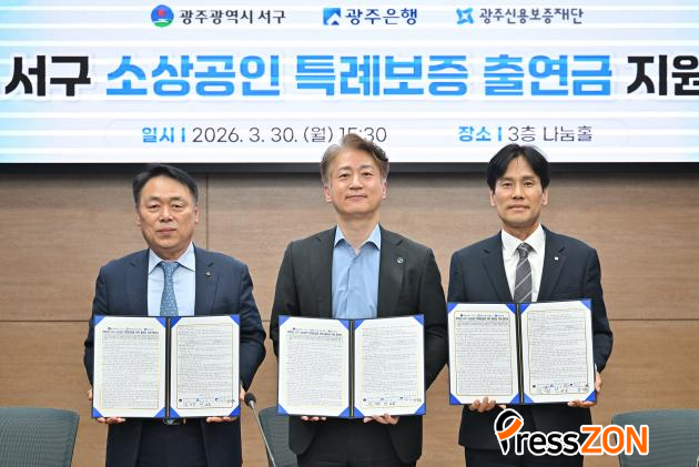 [ÇÁ·¹½ºÁ¸] ±¤ÁÖÀºÇà(ÀºÇàÀå Á¤Àϼ±)Àº 30ÀÏ, ±¤ÁÖ±¤¿ª½Ã ¼±¸Ã»¿¡¼ ±èÀ̰ ±¤ÁÖ±¤¿ª½Ã ¼±¸Ã»Àå, °ÁöÈÆ ±¤ÁÖÀºÇà ºÎÇàÀå, ¿°±Ô¼Û ±¤Áֽſ뺸ÁõÀç´Ü ÀÌ»çÀå ¹× °ü°èÀÚ°¡ Âü¼®ÇÑ °¡¿îµ¥ ¡®¼±¸ ¼Ò»ó°øÀΠƯ·Êº¸Áõ ¾÷¹«Çù¾à¡¯À» ü°áÇß´Ù.