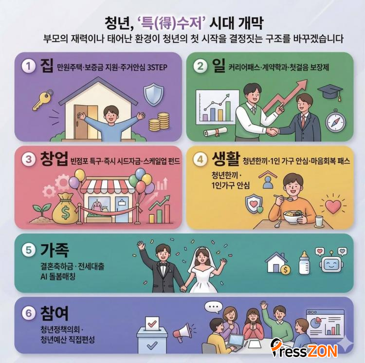 ½ÅÈ¥¡¤À°¾Æ ¹× û³âÀÚÄ¡ ºÐ¾ß¿¡¼´Â ¡®Ã»³â°áÁ¤Á¤ºÎ¡¯ ±¸»óÀ» Á¦½ÃÇß´Ù. °áÈ¥ Áغñ ºñ¿ë ºÎ´ãÀ» ÁÙÀÌ´Â ¡®½ºµå¸Þ Á¤ÂûÁ¦ ¹Ù¿ìó¡¯¿Í AI ±â¹Ý À°¾Æ µ¹º½ ¸ÅĪ Ç÷§ÆûÀ» µµÀÔÇϰí, û³â»ç¾÷ ¿¹»ê 100%¸¦ û³âÀÌ Á÷Á¢ Æí¼ºÇÏ´Â ¡®Ã»³â¿¹»êÁ¦¡¯¿Í ¡®Àü³²±¤ÁÖû³âÁ¤Ã¥ÀÇȸ¡¯ »ó¼³È¸¦ ÃßÁøÇÏ°Ú´Ù°í ¹àÇû´Ù.
