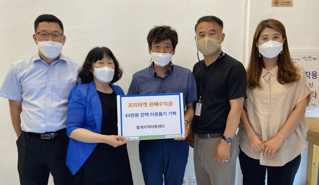 ¾ÆÀ̵éÀ» ´ë½ÅÇØ ¼öÀͱÝÀ» Àü´ÞÇÑ ½Å¹Ì¼÷ ¼¾ÅÍÀåÀº ¡°¾ÆÀ̵éÀÌ ¼öÀͱÝÀ» ÀÌ¿ôµ½±â¿¡ ¾²°Ú´Ù°í ¶æÀ» ¸ð¾Æ¼ ÀÌ·¸°Ô Àü´ÞÇÏ·¯ ¿Ô´Ù¡±¶ó¸ç ¡°ÀÏȸ¿ëǰÀ» ÁÙÀÌÀÚ´Â ÃëÁö¿¡¼ ¸¸µç »óǰ ¼öÀͱÝÀ̶ó ´õ¿í ¶æ ±í´Ù¡±¶ó°í ¹àÇû´Ù.