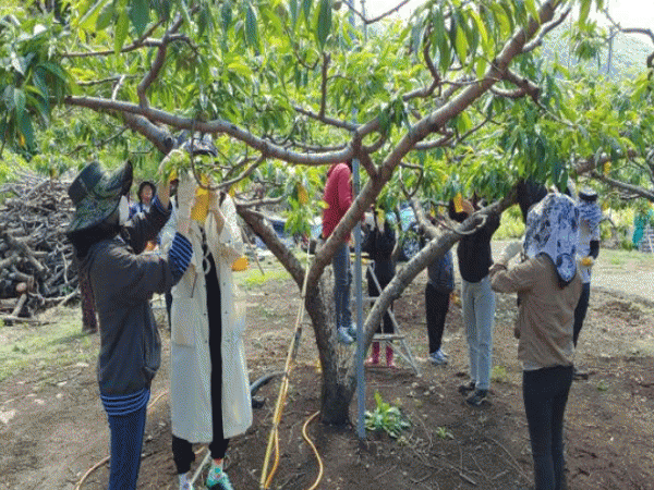 20ÀÏ È¼ø±º³ó¾÷±â¼ú¼¾ÅÍ Á÷¿ø 32¸íÀº ȼøÀ¾ ¼ö¸¸¸®¿¡ ÀÖ´Â º¹¼þ¾Æ ³óÀåÀ» ã¾Æ ºÀÁö ¾º¿ì±â ÀÛ¾÷À» µµ¿Ô´Ù. °ú¼ö Àç¹è¿¡ ºÀÁö ¾º¿ì±â ÀÛ¾÷Àº º´ÇØÃæ ¿¹¹æ°ú °ú½Ç Âø»ö °ü¸®¸¦ À§ÇØ ¸Å¿ì Áß¿äÇÑ °úÁ¤ÀÌ´Ù.