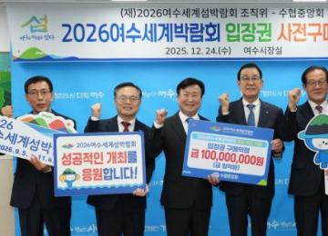 [ÇÁ·¹½ºÁ¸] (Àç)2026¿©¼ö¼¼°è¼¶¹Ú¶÷ȸÁ¶Á÷À§¿øÈ¸(ÀÌÇÏ ¡®Á¶Á÷À§¡¯)´Â Áö³ 24ÀÏ, ¼öÇùÁß¾Óȸ¿Í ¼¶¹Ú¶÷ȸ ¼º°ø °³ÃÖ¸¦ À§ÇÑ 1¾ï ¿ø ±Ô¸ðÀÇ ÀÔÀå±Ç ±¸¸Å¾àÁ¤À» ü°áÇß´Ù°í ¹àÇû´Ù. À̹ø ¾àÁ¤Àº ÇØ¾ç¼ö»ê ºÐ¾ß¸¦ ´ëÇ¥ÇÏ´Â ¼öÇùÁß¾Óȸ°¡ ¼¶¹Ú¶÷ȸ ÃëÁö¿¡ °ø°¨Çϸç ü°áµÆ´Ù. ¾Õ¼ Áö³ 11ÀÏ ¿©¼ö Áö¿ª ÇØ¾ç¼ö»ê ºÐ¾ß 11°³ ´Üü°¡¡¦