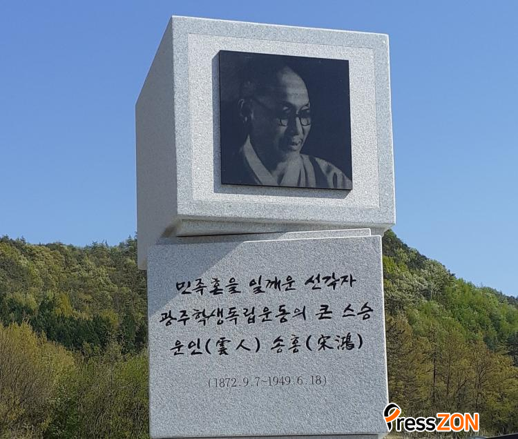 ¼ÛÈ« ¼±»ýÀÇ °¡¸£Ä§°ú ±â°³¸¦ ±â¸®±â À§ÇØ ¡¤±¤ÁÖ°íº¸¡¤¼Áß¡¤ÀÏ°í µ¿¹® µéÀº 1966³â 11¿ù2ÀÏ ´ç½Ã ¼Áß ±³Á¤¿¡ ¼¼¿î Çлýµ¶¸³¿îµ¿±â³äž ÀÔ±¸¿¡ ¼ÛÈÆ ¼±»ýÀÇ °øÀûÀ» ±â¸®´Â Èä»óÀ» °Ç¸³Çß´Ù.