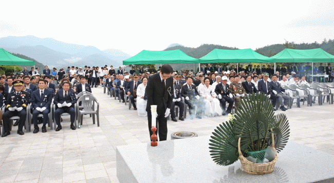 È£±¹º¸ÈÆÀÇ ´ÞÀ» ¸Â¾Æ ¼Û±Í±Ù °íÈﱺ¼ö´Â ¡°±¹°¡¸¦ À§ÇØ Çå½ÅÇϰí Èñ»ýÇϽŠÀ¯°øÀÚ¿Í À¯Á·µéÀÌ ÀÚ±à½ÉÀ» °¡Áú ¼ö ÀÖµµ·Ï µçµçÇÑ º¸ÈÆ Á¤Ã¥À¸·Î º¸´äÇϰڴ١±¸ç ¡°±¹°¡ À¯°øÀÚÀÇ °í±ÍÇÑ Èñ»ýÀ» ¿µ¿øÈ÷ ±â¾ïÇϸç, ±º¹Î ¸ðµÎ°¡ ¼ø±¹¼±¿ ¹× È£±¹¿µ·É¿¡ ´ëÇØ Ã߸ðÇÏ´Â ¸¶À½°ú °¨»çÇÏ´Â ¸¶À½À¸·Î È£±¹º¸ÈÆÀÇ ´ÞÀ» °æ°ÇÇÏ°Ô º¸³¾ ¼ö Àֱ⸦ ¹Ù¶õ´Ù¡±°í ´çºÎÇß´Ù.