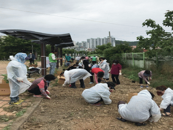 »êÁ¤µ¿ Áֹεé·Î ±¸¼ºµÈ ¡®Çູ¸¶À»1¹øÁö »êÁ¤µ¿»ç¶÷µé(´ëÇ¥ Á¶±â¼®)¡¯ ÁÖ°üÀ¸·Î ½Ç½ÃÇÑ À̹ø Çà»ç´Â ȸ¿ø°ú ÁֹΠ30¿©¸íÀÌ Âü¿©ÇÏ¿© ûȣÀ£ºù°ø¿ø ÀÏ¿ø¿¡ Á÷Á¢ ¶¥À» ÆÄ¼ °Å¸§À» »Ñ¸®°í ²É¹«¸© ¾¾¾ÑÀ» ½ÉÀ¸¸ç ±¸½½¶¡À» Èê·È´Ù.