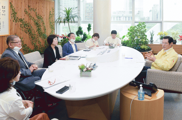 À̿뼷 ½ÃÀå°ú ±¤ÁÖÀå¾ÖÀÎºÎ¸ð¿¬´ë ±èÀ¯¼± ȸÀå, ±è¿ë¸ñ Àå¾ÖÀÎÂ÷º°Ã¶Æó¿¬´ëȸÀå, ÃÖ¼öÁ¤ ºÎ¸ð¿¬´ë ºÎȸÀå, Á¤¼øÀÓ ºÏ±¸ºÎ¸ð¿¬´ëÁöȸÀå, ±è¹Ì¶õ ºÎ¸ð¿¬´ë ¹ýÀÎÀÌ»ç µîÀº 11ÀÏ ¿ÀÀü ½Ãû Á¢°ß½Ç¿¡¼ °£´ãȸ¸¦ °¡Á³´Ù.