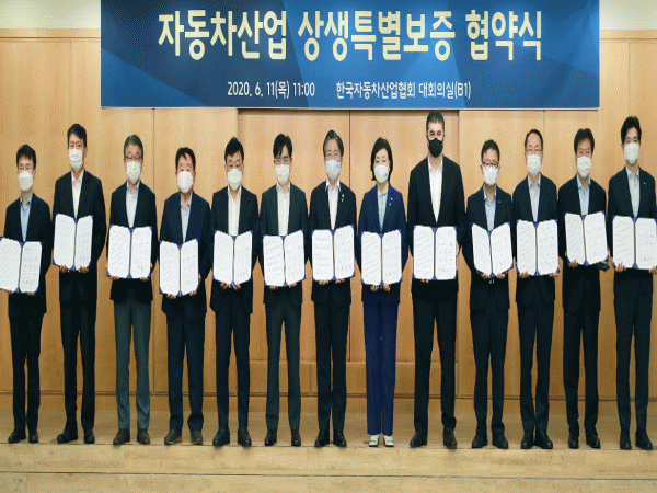±¤Áֽô 11ÀÏ ¼¿ï Çѱ¹ÀÚµ¿Â÷»ê¾÷Çùȸ¿¡¼ »ê¾÷Åë»óÀÚ¿øºÎ¿Í Áß¼Òº¥Ã³±â¾÷ºÎ°¡ ÁÖ°üÇÏ°í ¿Ï¼ºÂ÷ ±â¾÷, ±â¼úº¸Áõ±â±Ý, ÁöÀÚü µîÀÌ Âü¿©ÇÑ °¡¿îµ¥ ¡®ÀÚµ¿Â÷ ºÎǰ¾÷°è Áö¿øÀ» À§ÇÑ »ó»ýƯº°º¸Áõ Çù¾à¡¯À» ü°áÇß´Ù°í ¹àÇû´Ù.