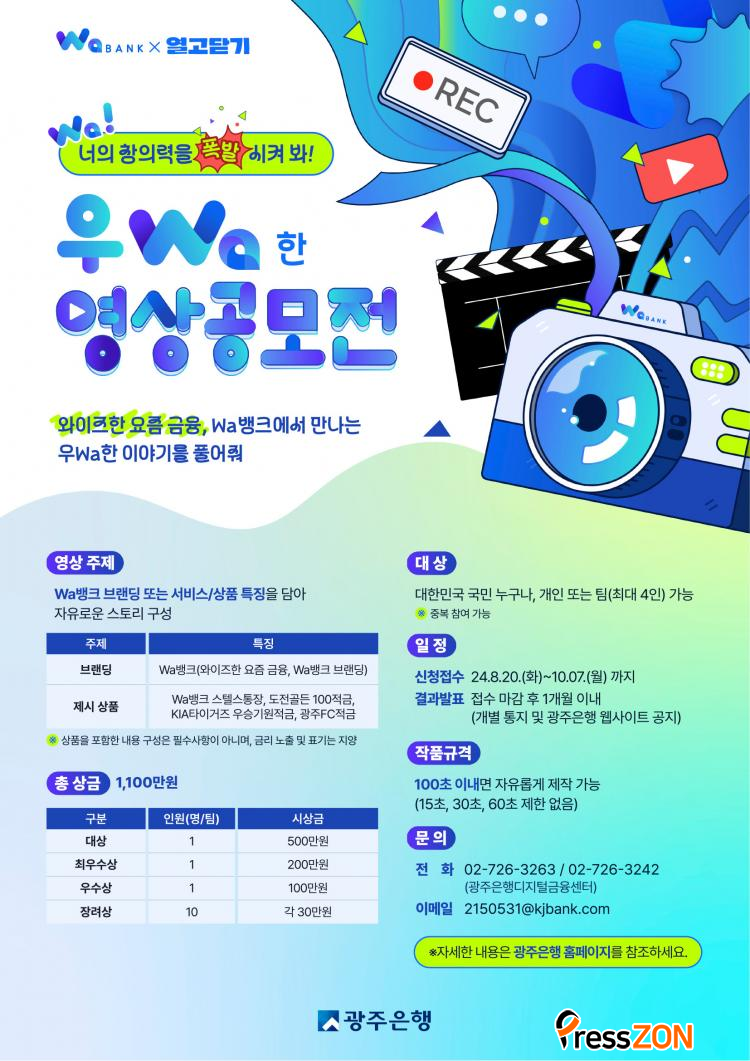 [ÇÁ·¹½ºÁ¸= ¹èÁøÈñ ±âÀÚ] ±¤ÁÖÀºÇà(ÀºÇàÀå °íº´ÀÏ)Àº ¡®±¤ÁÖ Wa¹ðÅ© ºê·£µù ¶Ç´Â ±¤ÁÖÀºÇà »óǰ ¹× ¼ºñ½º¡¯¸¦ ÁÖÁ¦·Î ÇÑ ¡®2024³â ±¤ÁÖ ¿Í¹ðÅ© ¿ìWaÇÑ ¿µ»ó°ø¸ðÀü¡¯À» °³ÃÖÇÑ´Ù°í ¹àÇû´Ù.