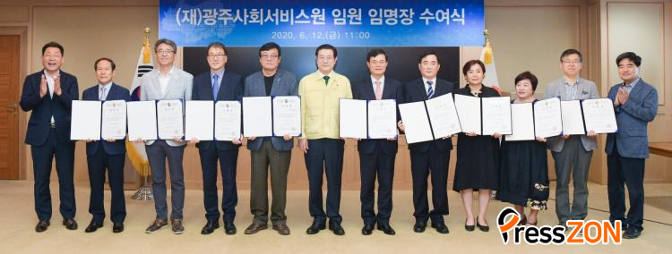 À̿뼷 ±¤ÁÖ±¤¿ª½ÃÀåÀÌ À̳¯ ¿ÀÀü ½Ãû 3Ãþ ºñÁî´Ï½º·ë¿¡¼ ±¤ÁÖ»çȸ¼ºñ½º¿ø Á¶È£±Ç ¿øÀåÀ» ºñ·Ô ÀÌ»ç 11¸í°ú °¨»ç 2¸í µî ÃÊ´ë ÀÓ¿ø¿¡ ´ëÇÑ ÀÓ¸íÀåÀ» ¼ö¿©ÇÑ ÈÄ ±â³äÃÔ¿µÀ» Çϰí ÀÖ´Ù. /±¤ÁÖ±¤¿ª½Ã Á¦°ø
