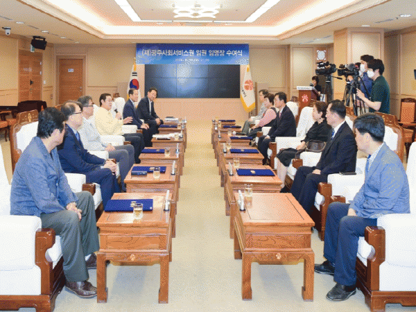 ±¤ÁÖ±¤¿ª½Ã¿¡ µû¸£¸é À̿뼷 ½ÃÀåÀº 12ÀÏ ¿ÀÀü Á¶È£±Ç ¿øÀåÀ» ºñ·ÔÇÑ ±¤ÁÖ»çȸ¼ºñ½º¿ø ÀÌ»ç 11¸í°ú °¨»ç 2¸í µî ÃÊ´ë ÀÓ¿ø¿¡ ´ëÇÑ ÀÓ¸íÀåÀ» ¼ö¿©Çß´Ù.