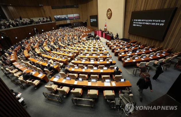 ±¹È¸´Â Àü³¯ À± ´ëÅë·É źÇÙ¼ÒÃß¾ÈÀ» ÅõÇ¥¿¡ ºÎÃÆÀ¸³ª źÇÙ ¹Ý´ë¸¦ ´ç·ÐÀ¸·Î Á¤ÇÑ ¿©´çÀÌ º»È¸ÀÇÀå¿¡¼ Áý´Ü ÅðÀåÇÏ¸é¼ ÅõÇ¥°¡ ºÒ¼º¸³µÆ´Ù.