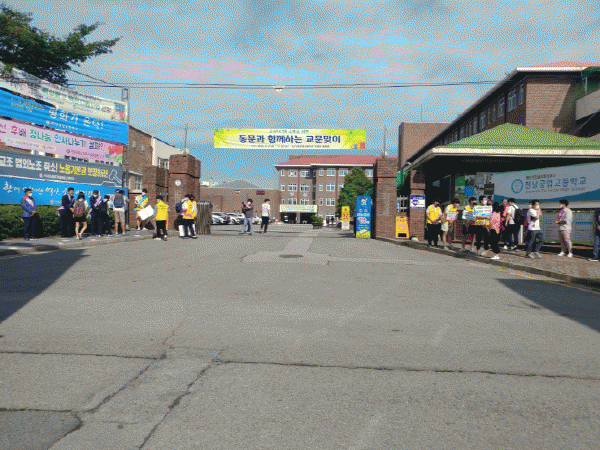 À̹ø ±³¹®¸ÂÀÌ Çà»ç´Â Àü³²°ø°í Ãѵ¿¹®È¸ ÀÓ¿øÀ» Æ÷ÇÔÇÑ 100¿© ¸íÀÇ µ¿¹® ¹× ±³Á÷¿øµéÀÌ ÀÚ¹ßÀûÀ¸·Î Âü¿©Çϰí ÀÖ°í, Àü³²°ø°í Çлýȸµµ ¼±¹èµéÀÇ µî±·±æ ±³¹®¸ÂÀÌ Çà»ç¿¡ È£ÀÀÇØ Àû±Ø µ¿ÂüÇϰí ÀÖ´Ù. µ¿¹®µéÀº ¸ÅÀÏ ¿ÀÀü 7½Ã30ºÐºÎÅÍ ¿ÀÀü 9½Ã±îÁö ¡®»ç¶ûÇÕ´Ï´Ù ÈĹè´Ô¡¯À̶ó´Â Àλç·Î ÇлýµéÀ» ¹Ý°©°Ô ¸ÂÀÌÇÑ´Ù. Àü³²°ø°í´Â À̹ø µî±·±æ ±³¹®¸ÂÀÌ Çà»ç¸¦ ÅëÇØ ±Ý¿¬?±³Åë¾ÈÀü?Àλ糪´® µî »óÈ£ ±³·ùÀÇ ÀåÀ» ¿¾î°¡°í ÀÖ´Ù.