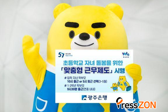[ÇÁ·¹½ºÁ¸= ¹èÁøÈñ ±âÀÚ] ±¤ÁÖÀºÇà(ÀºÇàÀå °íº´ÀÏ)Àº Á÷¿øµéÀÇ ÇູÇÑ ÀÏÅÍ Á¶¼º°ú ÀÏ¡¤°¡Á¤ ¾ç¸³À» Àû±Ø Áö¿øÇϱâ À§ÇØ ÃʵîÇб³ ÀÚ³à µ¹º½À» À§ÇÑ µÎ °¡Áö ¡®¸ÂÃãÇü ±Ù¹« Á¦µµ¡¯¸¦ ½ÃÇàÇÑ´Ù°í ¹àÇû´Ù.
