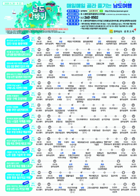 Àü¶ó³²µµ°¡ Áö³ 1¿ù ¾ß½ÉÂ÷°Ô Ãâ½ÃÇÑ »õ¹Ù¿©ÇàÀº KTX°í¼Ó¿Â÷¸¦ Ÿ°í ±¤ÁÖ¼ÛÁ¤¿ª¿¡¼ ³»·Á ³²µµÇѹÙÄû ¹ö½º·Î ¿©ÇàÀ» Áñ±â´Â »óǰÀÌ´Ù. Àú·ÅÇÑ ÀÌ¿ë¿ä±Ý°ú Æí¸®ÇÑ ±³ÅëÆíÀ¸·Î ÇÏ·ç ¸¸¿¡ Àü³² ¹Ù´Ù¿©ÇàÀ» Áñ±æ ¼ö ÀÖ´Ù.