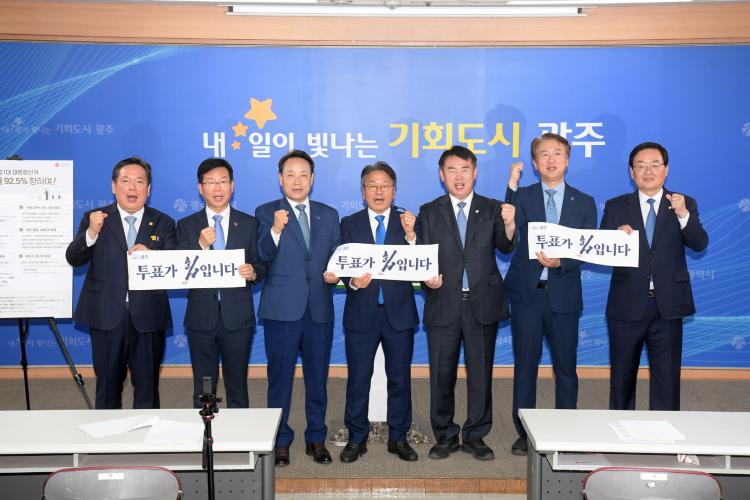 ¾Õ¼ ±¤ÁÖ½Ã¿Í ±³À°Ã», ÀÚÄ¡±¸´Â Áö³´Þ 12ÀÏ ½Ã¹ÎÀÇ ÅõÇ¥ Âü¿©¸¦ µ¶·ÁÇϱâ À§ÇÑ °øµ¿ ±âÀÚȸ°ßÀ» ¿°í ¡®±¤ÁÖ ¿ª´ë ÃÖ°í ÅõÇ¥À² 92.5% ÇâÇÑ Àû±ØÇàÁ¤¡¦±¤ÁÖ½Ã-±³À°Ã»-ÀÚÄ¡±¸, 6´ë ½Çõ ¾à¼Ó¡¯À» ÇÑ ¹Ù ÀÖ´Ù.