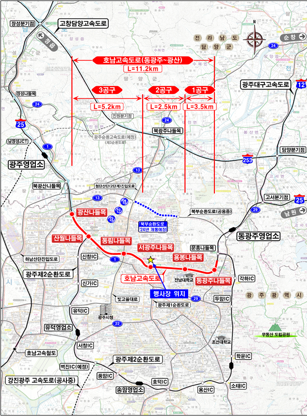 µ¿±¤ÁÖIC~±¤»êIC ±¸°£Àº ÀÏÀÏ Æò±Õ ¾à 14¸¸´ë°¡ ÅëÇàÇÏ´Â ±¤ÁÖ ¿Ü°û ÁÖ¿ä µµ·Î·Î, ÀûÁ¤ ÅëÇà·®(5¸¸1300´ë)ÀÇ ¾à 2.7¹è¿¡ ´ÞÇÏ´Â Â÷·®ÀÌ ¸ô¸®´Â Àü±¹ ÃÖ¾ÇÀÇ ±³ÅëÁ¤Ã¼ ±¸°£ Áß ÇÑ °÷ÀÌ´Ù.