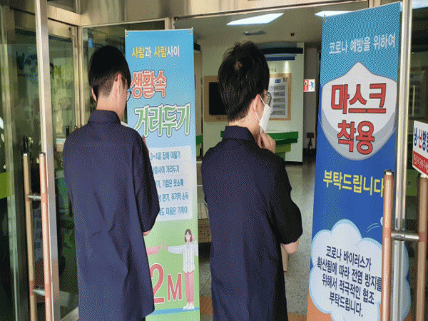 ´ëÁß±³Åë½Ã¼³ ÀÌ¿ë ½Ã ¸¶½ºÅ©¸¦ ¾²µµ·Ï È«º¸Çϰí ÀÖÀ¸¸ç, ¹ÌÂø¿ëÀÚ¸¦ À§ÇØ ¹ö½ºÅ͹̳ο¡ ¸¶½ºÅ©¸¦ ºñÄ¡Çß´Ù. °æ·Î´ç, À¯»ó°¢ µî ÁÖ¹ÎÀÌ ¸¹ÀÌ ¸ðÀÌ´Â ÁýÇÕÀå¼Ò¿¡ ¹æ¿ª¼öÄ¢ È«º¸ Æ÷½ºÅ͸¦ ºÎÂøÇÏ¿© »ýȰ ¼Ó °Å¸®µÎ±â¸¦ ½ÇõÇϵµ·Ï ¾È³»Çϰí ÀÖ´Ù.