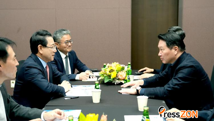[ÇÁ·¹½ºÁ¸] ±è¿µ·Ï Àü¶ó³²µµÁö»ç°¡ 3ÀÏ ¼¿ï ÄÚ¿¢½º¿¡¼ ¿¸° ¡®SK AI SUMMIT 2025¡¯¿¡¼ ÃÖÅ¿ø SK±×·ì ȸÀåÀ» ¸¸³µ´Ù.