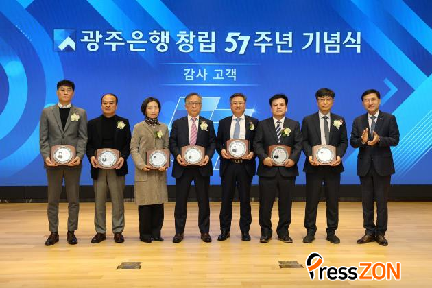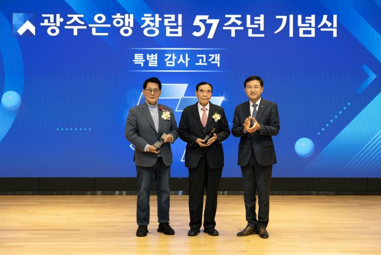 [ÇÁ·¹½ºÁ¸] ±¤ÁÖÀºÇà(ÀºÇàÀå °íº´ÀÏ)Àº 20ÀÏ º»Á¡¿¡¼ ⸳ 57ÁÖ³âÀ» ±â³äÇϰí, Áö¿ª°æÁ¦ ¹ßÀü¿¡ ±â¿©ÇÑ °í°´°ú ÀºÇà ¹ßÀü¿¡ °øÇåÇÑ Á÷¿ø¿¡°Ô °¨»çÆÐ¿Í Æ÷»óÀ» ¼ö¿©Çß´Ù.