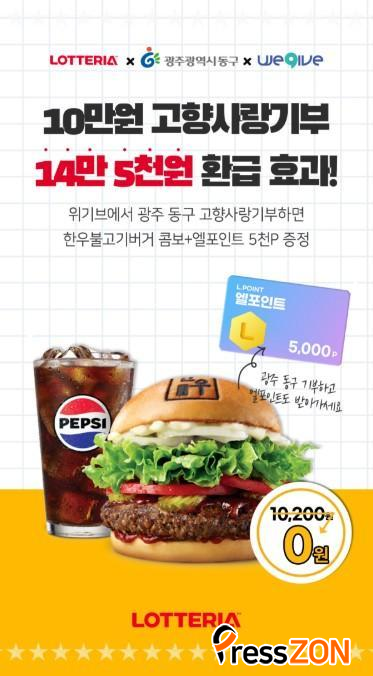 ±¤ÁÖ µ¿±¸¿¡ 10¸¸ ¿øÀ» ±âºÎÇÑ Âü¿©ÀÚ´Â ¡ã10¸¸ ¿ø ¿¬¸»Á¤»ê 100% ¼¼¾×°øÁ¦ ¡ã±¤ÁÖ µ¿±¸ ´ä·Êǰ(±âºÎ¾×ÀÇ 30% Çѵµ) Á¦°ø ¿Ü¿¡µµ, ·Ôµ¥¸®¾Æ ¡®ÇÑ¿ì ºÒ°í±â ¹ö°Å ÄÞº¸¡¯ ÄíÆù 1¸Å¿Í ¿¤Æ÷ÀÎÆ® 5õ Æ÷ÀÎÆ®¸¦ Ãß°¡·Î ¹ÞÀ» ¼ö ÀÖ´Ù. ±âºÎÀÚ°¡ ½ÇÁ¦·Î ¹ÞÀ» ¼ö ÀÖ´Â Àüü ÇýÅà ±Ô¸ð´Â 14¸¸ 5õ ¿ø »ó´çÀ¸·Î, ÄíÆù°ú ¿¤Æ÷ÀÎÆ®´Â ¸ÅÁÖ ¸ñ¿äÀÏ ¼øÂ÷ÀûÀ¸·Î ¹ß¼ÛµÉ ¿¹Á¤ÀÌ´Ù.