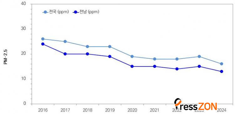 [ÇÁ·¹½ºÁ¸] 2024³â Àü³²Áö¿ª ¹Ì¼¼¸ÕÁö¿Í Ãʹ̼¼¸ÕÁö ³óµµ°¡ ÃÖ±Ù 10³â Áß °¡Àå ³·°í, ƯÈ÷ Ãʹ̼¼¸ÕÁö´Â Àü±¹¿¡¼ °¡Àå ³·Àº ¼öÁØÀ̾ú´ø °ÍÀ¸·Î ³ªÅ¸³µ´Ù.