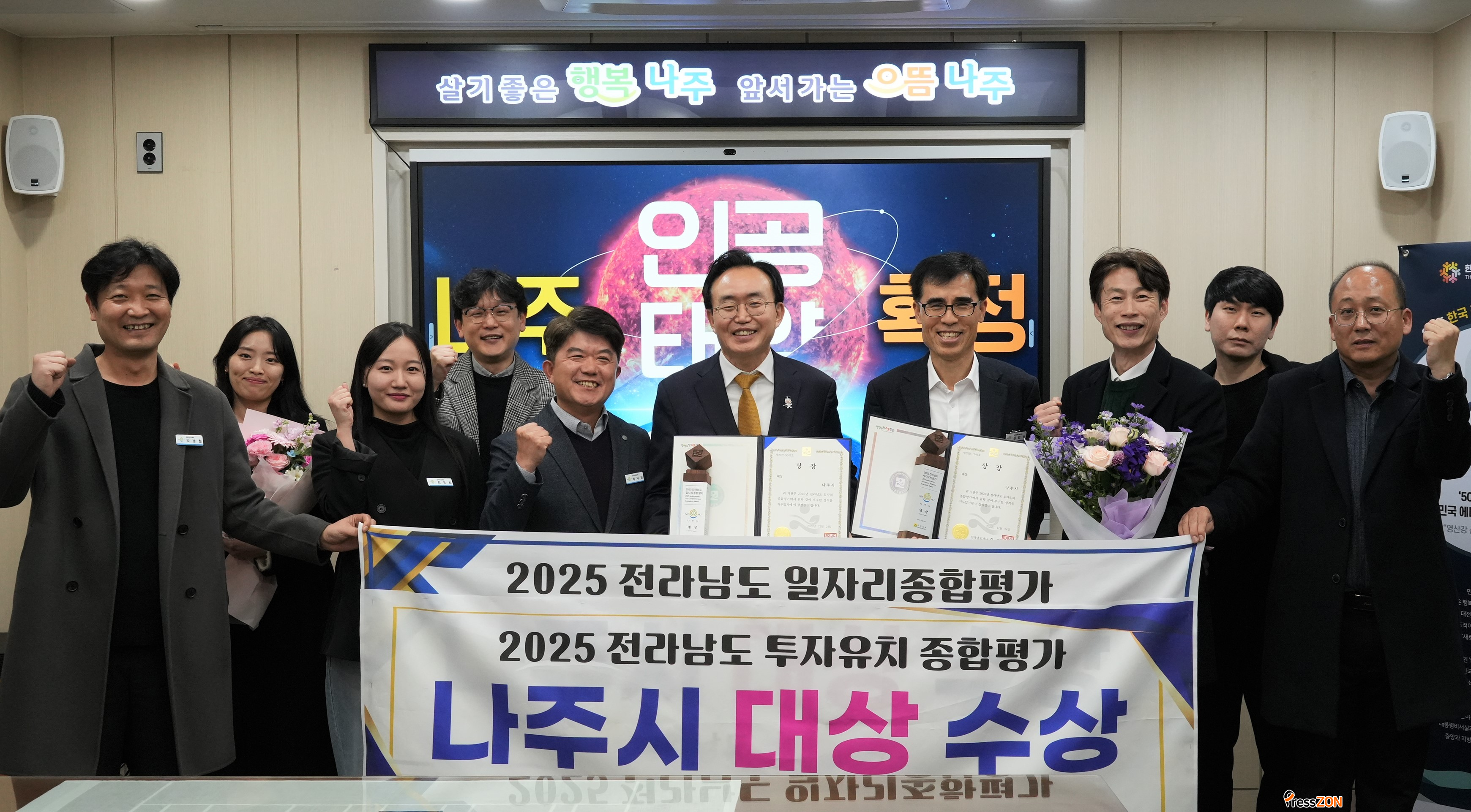 ³ªÁÖ½Ã(½ÃÀå À±º´ÅÂ)´Â Áö³ 24ÀÏ ¿©¼ö¿¢½ºÆ÷ÄÁº¥¼Ç¼¾ÅÍ¿¡¼ ¿¸° ¡®2025³â Àü¶ó³²µµ ÀÏÀÚ¸®¡¤°æÁ¦ ÇѸ¶´ç¡¯ Çà»ç¿¡¼ ÀÏÀÚ¸® âÃâ°ú ÅõÀÚÀ¯Ä¡ 2°³ ºÎ¹®¿¡¼ °¢°¢ ÃÖ°í»óÀÎ ¡®´ë»ó¡¯À» ¼ö»óÇß´Ù°í 26ÀÏ ¹àÇû´Ù.