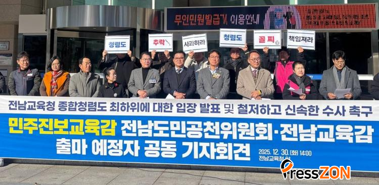 [ÇÁ·¹½ºÁ¸] ¹ÎÁÖÁøº¸±³À°°¨ Àü³²µµ¹Î°øÃµÀ§¿øÈ¸´Â 30ÀÏ Àü¶ó³²µµ±³À°Ã» ¾Õ¿¡¼ ¡®Àü³²±³À°Ã» Á¾ÇÕû·Åµµ ÃÖÇÏÀ§¿¡ ´ëÇÑ ÀÔÀå ¹ßÇ¥ ¹× öÀúÇÏ°í ½Å¼ÓÇÑ ¼ö»ç Ã˱¸¡¯ ±âÀÚȸ°ßÀ» °³ÃÖÇß´Ù.