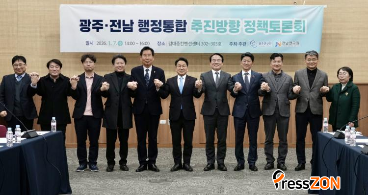 [ÇÁ·¹½ºÁ¸] ±¤ÁÖ¿¬±¸¿ø(¿øÀå ÃÖÄ¡±¹)°ú Àü³²¿¬±¸¿ø(¿øÀå ±è¿µ¼±)Àº 7ÀÏ ¿ÀÈÄ ±è´ëÁßÄÁº¥¼Ç¼¾ÅÍ¿¡¼ ±¤ÁÖ¡¤Àü³² ÇàÁ¤ÅëÇÕ ÃßÁø Çʿ伺¿¡ ´ëÇÑ »çȸÀû °ø°¨´ë¸¦ È®º¸ÇÏ°í ¼º°øÀû ÅëÇÕ ¹æ¾ÈÀ» ¸ð»öÇϱâ À§ÇØ ¡®±¤ÁÖ¡¤Àü³² ÇàÁ¤ÅëÇÕ ÃßÁø ¹æÇâ Á¤Ã¥Åä·Ðȸ¡¯¸¦ °³ÃÖÇß´Ù.
