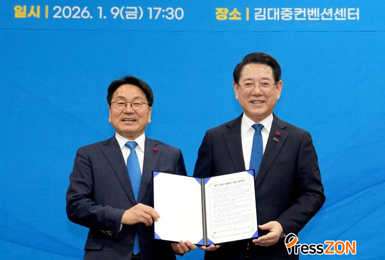 ÀÌÀç¸í ´ëÅë·ÉÀº ¡°½¬¿î ÀÏÀÌ ¾Æ´Ñ ÅëÇÕÀ» ´ë½ÂÀû Â÷¿ø¿¡¼ ÃßÁø ÁßÀÎ µÎ ´ÜüÀåÀÇ °á´Ü¿¡ °¨»çµå¸°´Ù¡±¸ç ¡°´ëÇѹα¹ ¹ÎÁÖÁÖÀÇ ¹ßÀü¿¡ ±â¿©Çؿ ±¤ÁÖ¡¤Àü³²ÀÌ »õ·Î¿î Àü±â¸¦ ¸ÂÀÌÇÒ ¼ö ÀÖµµ·Ï ÀçÁ¤¡¤»ê¾÷¡¤ÇàÁ¤ Àü¹Ý¿¡ °ÉÄ£ ´ëÆøÀûÀÎ Áö¿øÀ» Çϰڴ١±°í ¾à¼ÓÇß´Ù.