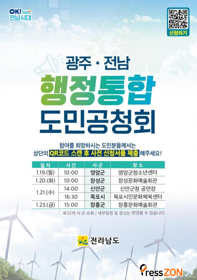 [ÇÁ·¹½ºÁ¸] Àü¶ó³²µµ´Â ±¤ÁÖ¡¤Àü³² ÇàÁ¤ÅëÇÕ¿¡ ´ëÇÑ µµ¹Î ÀǰßÀ» ¼ö·ÅÇϱâ À§ÇØ 19ÀÏ ¿µ¾Ï±ºÀ» ½ÃÀÛÀ¸·Î 22°³ ½Ã±ºÀ» µ¹¸ç µµ¹Î°øÃ»È¸¸¦ °³ÃÖÇÑ´Ù.