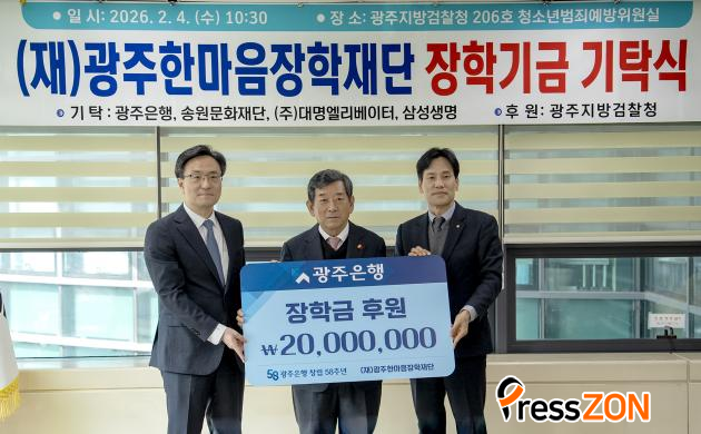 [ÇÁ·¹½ºÁ¸] ±¤ÁÖÀºÇà(ÀºÇàÀå Á¤Àϼ±)Àº 4ÀÏ ±¤ÁÖÁö¹æ°ËÂûû¿¡¼ °ÁöÈÆ ±¤ÁÖÀºÇà ¿µ¾÷1º»ºÎ ºÎÇàÀå°ú ±èÁ¾¿ì ±¤ÁÖÁö¹æ°ËÂûû °Ë»çÀå, ÇÑ»ó¿ø ±¤ÁÖÇѸ¶À½ÀåÇÐÀç´Ü ÀÌ»çÀåÀÌ Âü¼®ÇÑ °¡¿îµ¥, (Àç)±¤ÁÖÇѸ¶À½ÀåÇÐÀç´Ü¿¡ ÀåÇÐ±Ý 2õ¸¸ ¿øÀ» Àü´ÞÇß´Ù°í ¹àÇû´Ù.