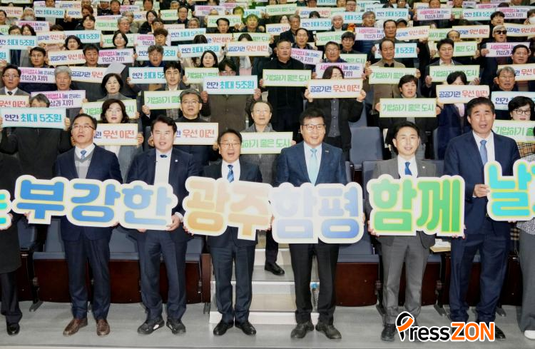 ° ½ÃÀåÀº ÅëÇÕÈ¿°ú·Î ¡°Àα¸ 500¸¸, GRDP 300Á¶, °æÁ¦¼ºÀå·ü 3%ÀÇ ½Å°æÁ¦Æ¯º°½Ã¸¦ ¸¸µå´Â °ÍÀÌ ¸ñÇ¥¡±¶ó¸ç ¡°¹ÎÁÖÁÖÀǸ¦ À̲ø¾î¿Â ±¤ÁÖ¿Í Àü³²ÀÌ ÀÌÁ¦ ´ëÇѹα¹ÀÇ ¼ºÀåÀ» À̲ø¾î¾ß ÇÑ´Ù¡±°í °Á¶Çß´Ù.