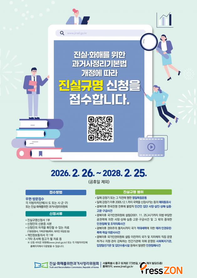 ½ÅûÀº Çѱ¹ÀüÀï ÀüÈÄ ¹Î°£ÀÎ Áý´ÜÈñ»ý »ç°Ç µî ±¹°¡ Æø·Â°ú ÀαÇÄ§ÇØ »ç°ÇÀÇ Áø»óÀ» ¹àÈ÷°í, ÇÇÇØÀÚ ¸í¿¹¸¦ ȸº¹Çϱâ À§ÇÑ ÀýÂ÷·Î, 2028³â 2¿ù 25ÀϱîÁö 2³â °£ ÇÒ ¼ö ÀÖ´Ù.