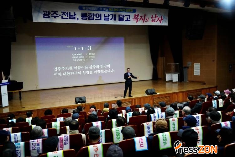 °±âÁ¤ ½ÃÀåÀº ¡°±¤ÁÖÀü³²ÀÇ ÅëÇÕÀº ´Ü¼øÈ÷ ÇàÁ¤±¸¿ªÀ» ÇÕÄ¡´Â Â÷¿øÀ» ³Ñ¾î ½Ã¹ÎÀÇ »îÀÇ ÁúÀ» ¹Ù²Ù´Â ¼±Åá±À̶ó¸ç ¡°ÅëÇÕÀ» ÅëÇØ ¼öµµ±Ç¿¡ ´ëÀÀÇÏ´Â Ãʱ¤¿ª »ê¾÷ Á߽ɵµ½Ã¸¦ ¸¸µé°í, ¡®ÀÎ(In)¼¿ï¡¯ÀÌ ¾Æ´Ñ ¡®ÀÎ(In)±¤ÁÖ, ÀÎ(In)Àü³²¡¯ÀÇ ½Ã´ë¸¦ ¿°Ú´Ù¡±°í °Á¶Çß´Ù.