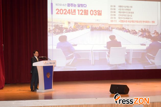 ° ½ÃÀåÀº ¸ÕÀú À§±â ¼Ó¿¡¼ º¸¿©ÁØ ±¤ÁÖÀÇ ´ëÀÀ·ÂÀ» ¾ð±ÞÇß´Ù. ±×´Â ¡°2024³â 12¿ù3ÀÏ °è¾öÀÇ ¹ã, ±¤ÁÖ½ÃûÀÇ ºÒÀº ²¨ÁöÁö ¾Ê¾Ò´Ù¡±¸ç ¡°ÇàÁ¤¾ÈÀüºÎ°¡ û»ç Æó¼â¸¦ Áö½ÃÇß´ø ±× ½Ã°¢, ±¤ÁÖ½ÃûÀº ºÒÀ» ¹àÇû°í, ¹ÎÁÖÁÖÀǸ¦ ÁöŰ´Â Ç×ÀïÀÇ º»ºÎ¿´´Ù¡±°í ȸ°íÇß´Ù.