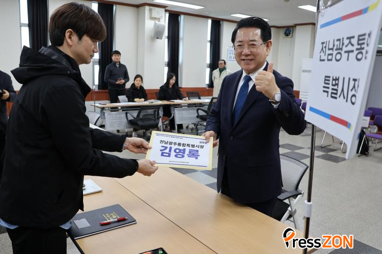 [ÇÁ·¹½ºÁ¸] ±è¿µ·Ï Àü³²Áö»ç°¡ Áö»çÁ÷À» ³»·Á³õ°í Àü³²±¤ÁÖÆ¯º°½ÃÀå ¼±°Å¿¡ º»°Ý ¶Ù¾îµé¸ç ´õºÒ¾î¹ÎÁÖ´ç Èĺ¸ °æ¼±¿¡ ¡®¹è¼öÀÇ Áø¡¯À» ÃÆ´Ù.